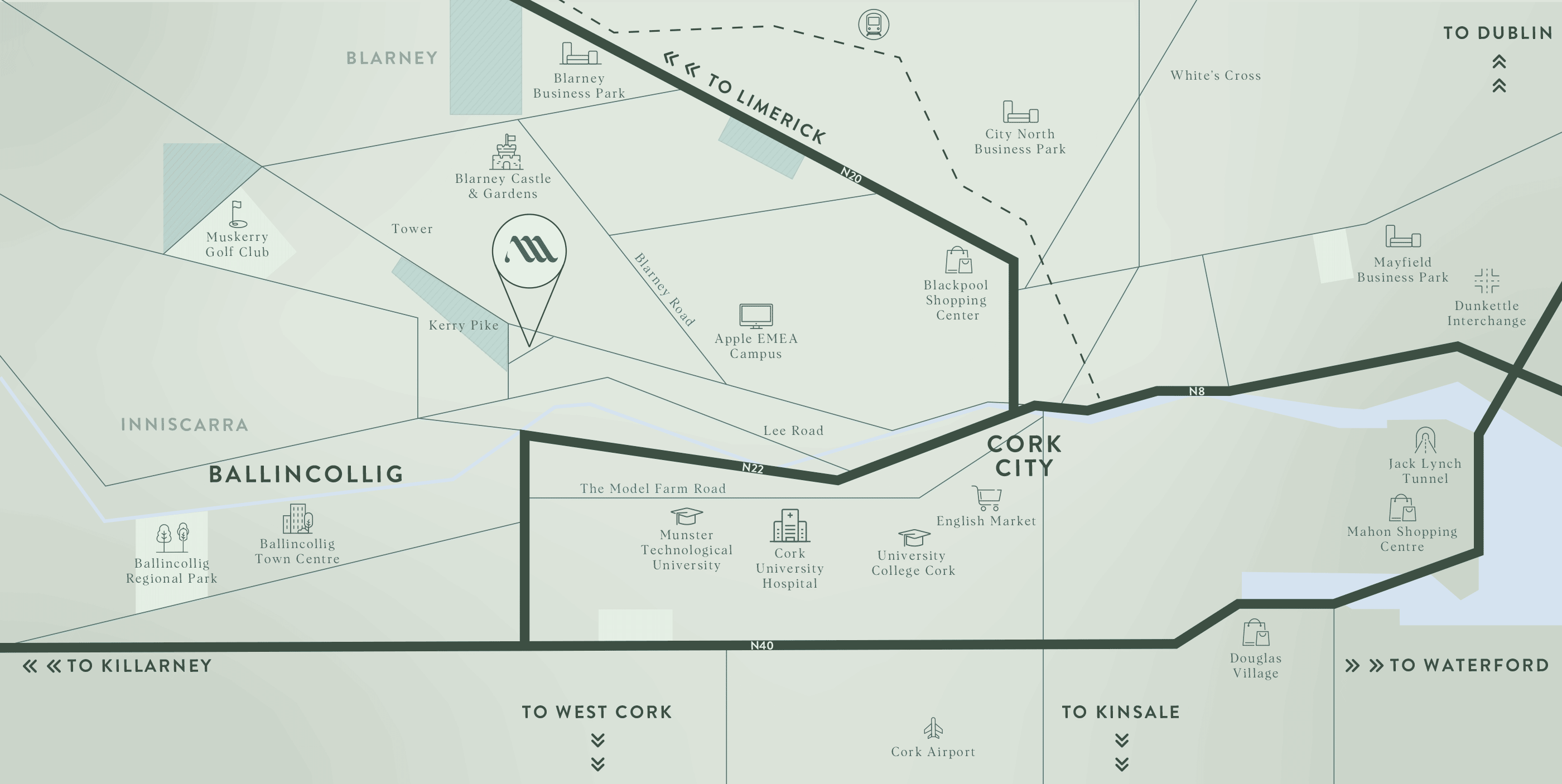Millboro benefits from a wide range of recreational amenities both locally and in the surrounding areas. These include the world famous Blarney Castle, GAA clubs, rugby, golf & public parks. Kerry Pike also offers convenient access to schools, with Clogheen Kerry Pike national school situated immediately west of Millboro and the major employment hubs including Apples EMEA headquarters, numerous business campuses in Ballincollig and Cork University hospital at Wilton to name but a few. There is a local bar and well known restaurant situated within the village.