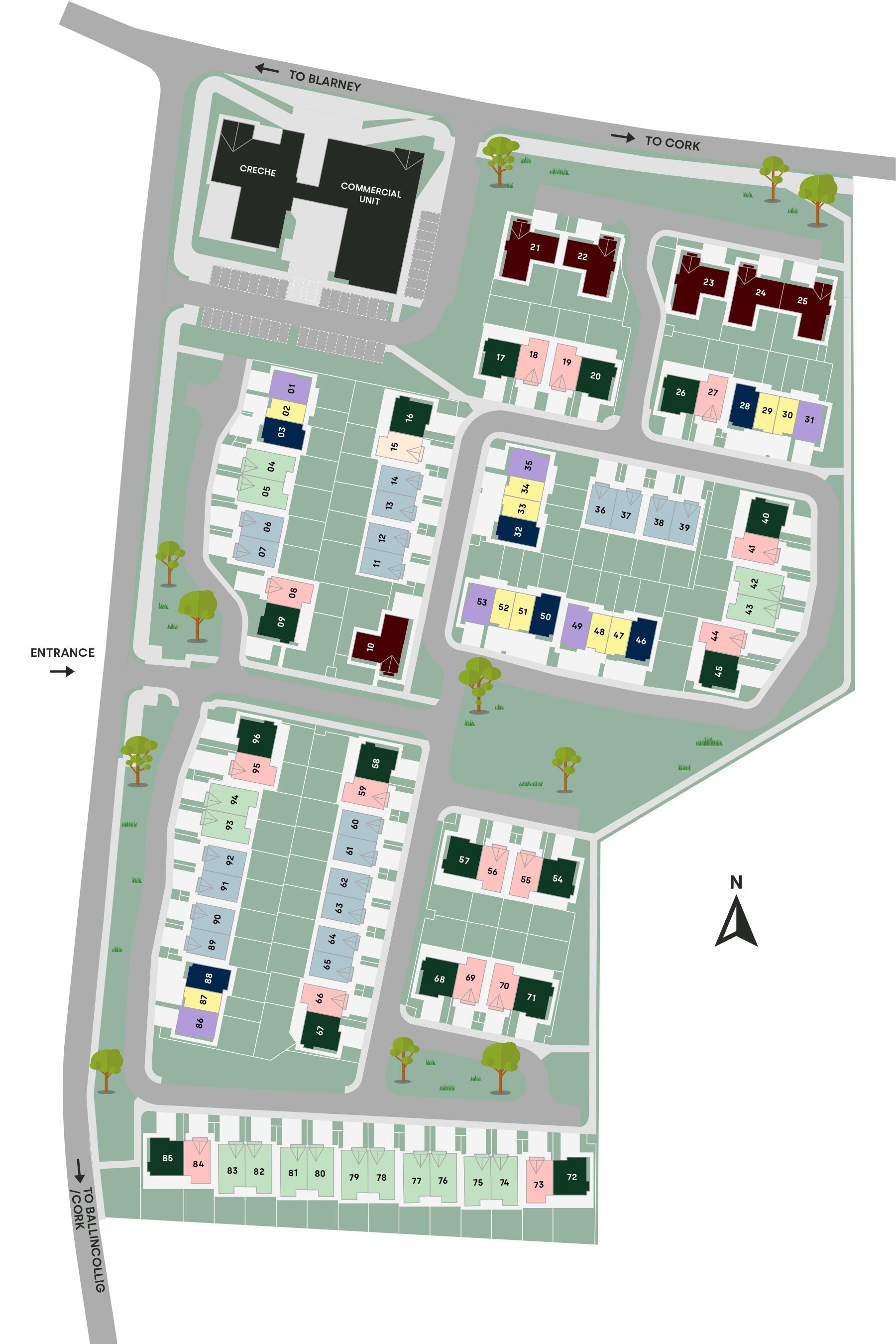 Millboro is a new modern residential development offering a choice of townhouses, semi detached and detached homes, all within a superbly landscaped neighbourhood. In addition, a commercial neighbourhood centre including a new purpose built creche and convenience store will form part of the development.